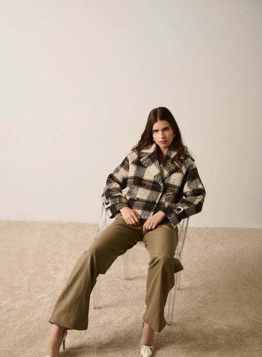 Ridder Cropped Coat - Brown/Grey Check