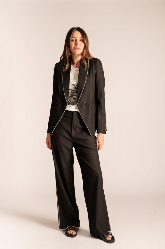 Alexandra Diamond Blazer and Pant Set - Black/Silver