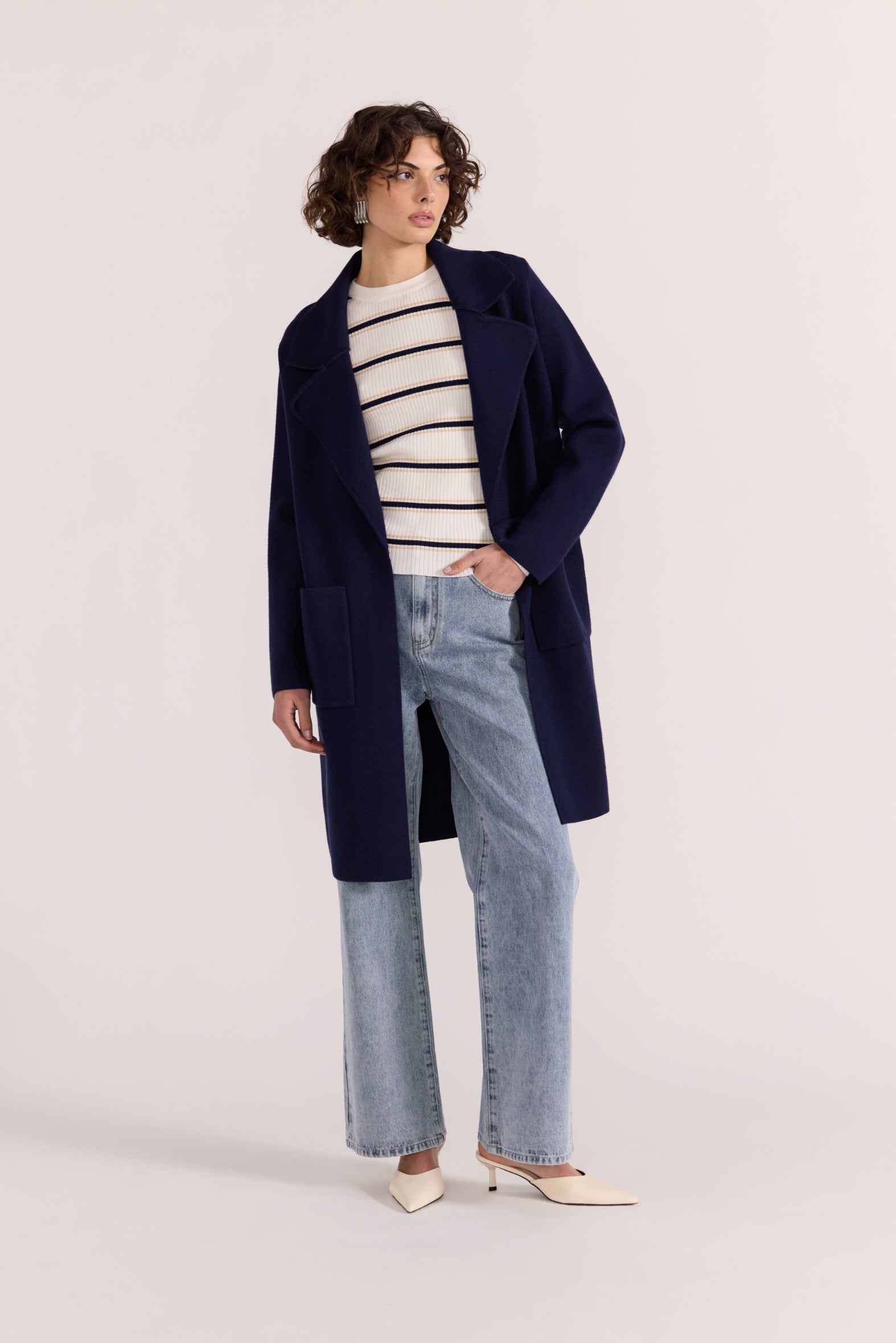Where structure meets softness, the Hunter Coatigan is an essential outerwear piece designed for modern layering. Crafted from a mid-weight knit blend, this longline coatigan features a tailored collar, open front and oversized patch pockets—balancing the polish of a coat with the comfort of a cardigan. The Hunter Coatigan is a wardrobe staple for effortless layering -perfect over denim, tailoring, or elevated knitwear.