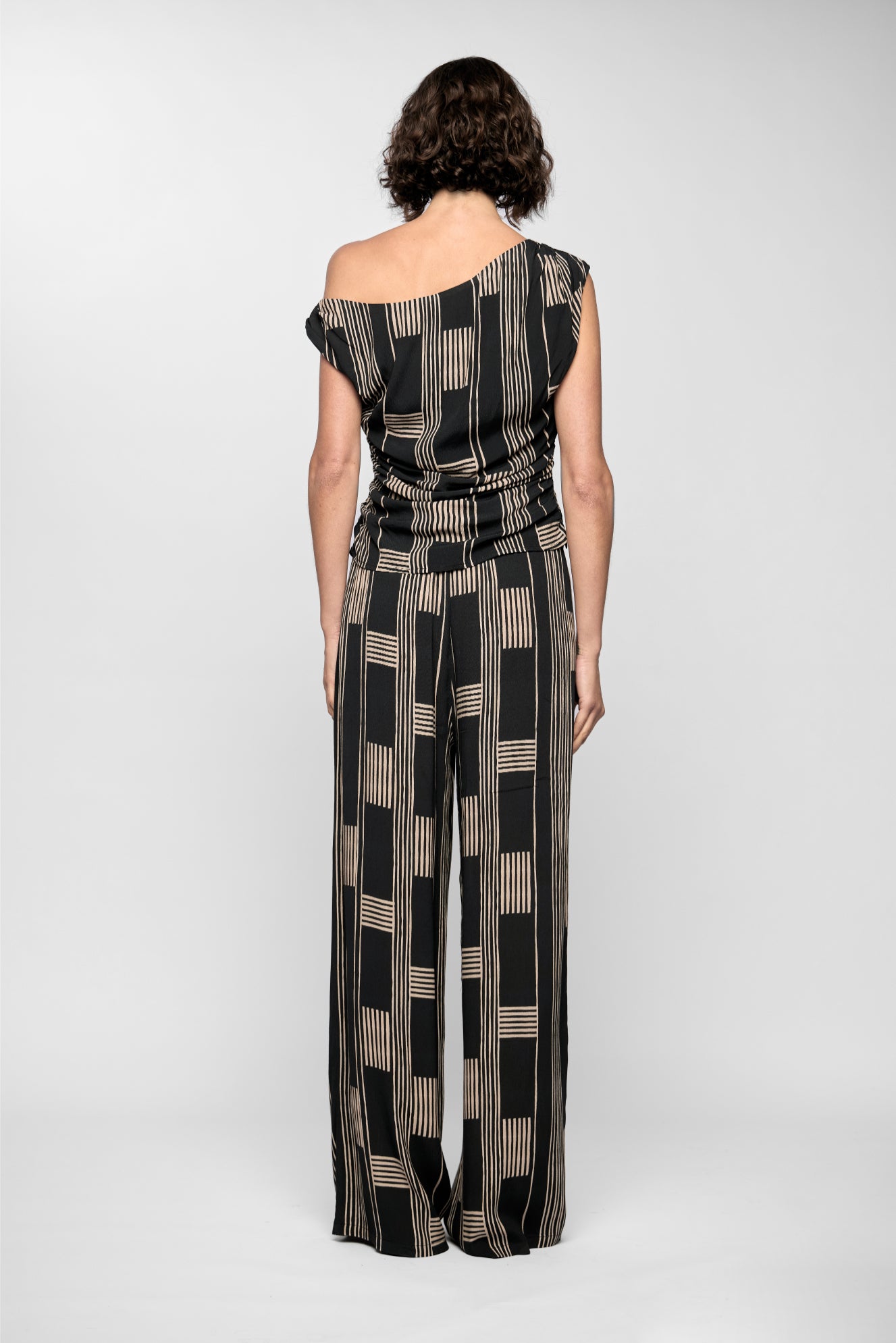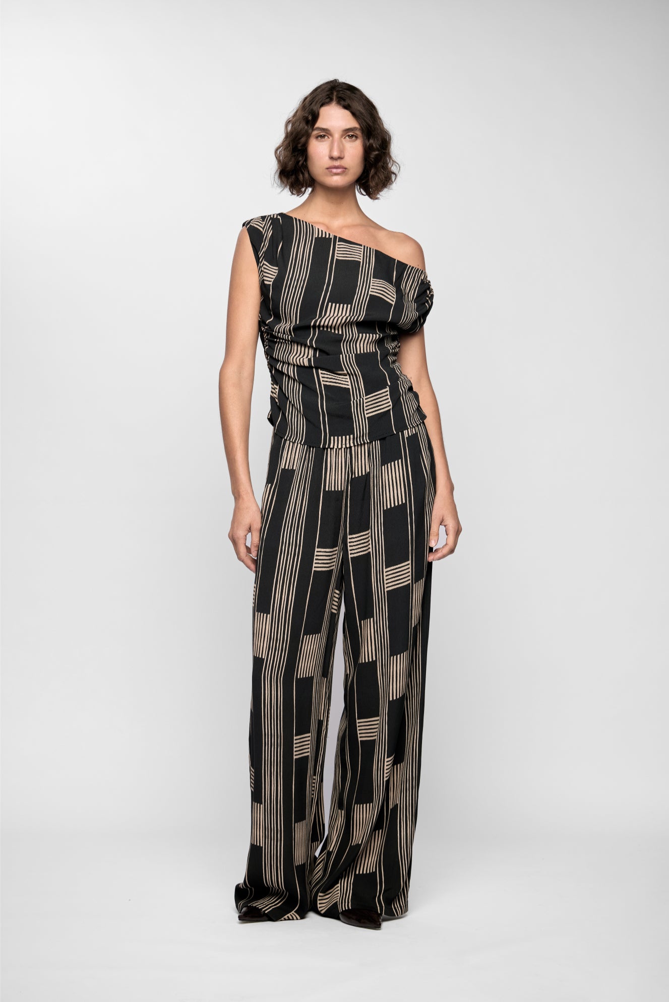 Slip into effortless style with the Marina Drawstring Pants. Made from soft 100% viscose, these wide-leg trousers feature a graphic black and beige print and a comfy adjustable waistband. Style with the matching Marina Asymmetrical Top for a chic co-ord, or keep it casual with a tucked-in tee.
